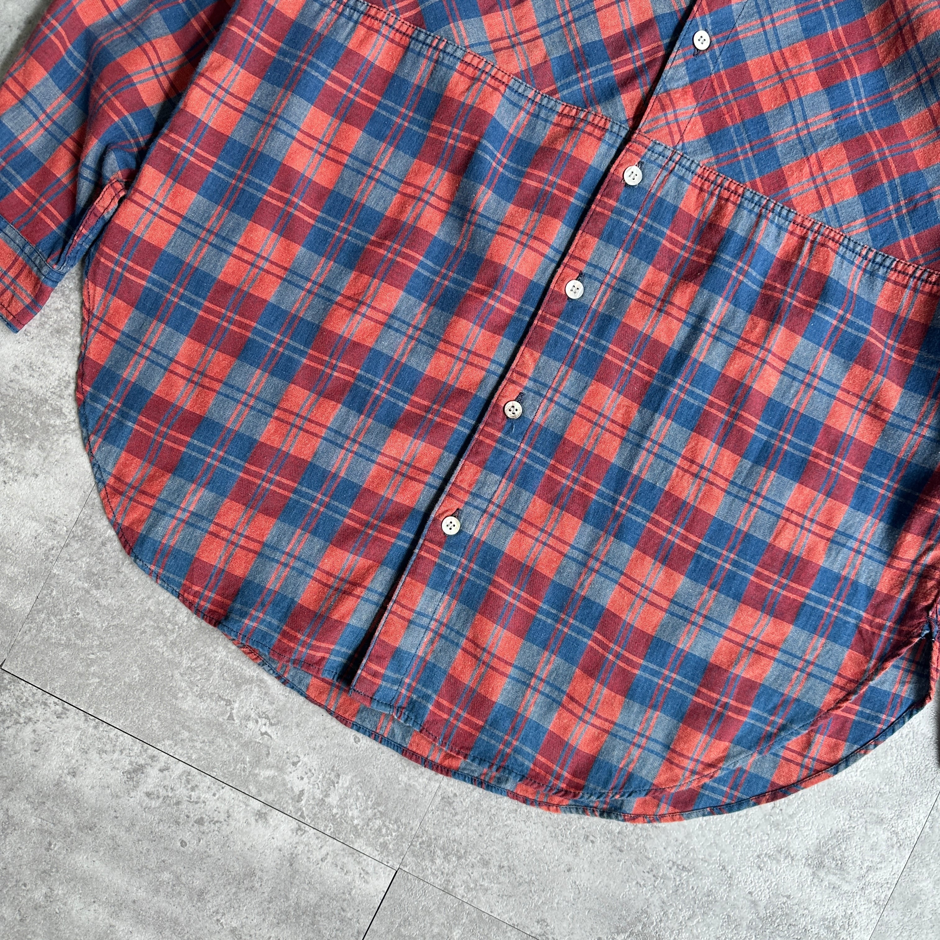 old HAI Sporting Gear L/S cotton×wool collarless plaid shirt