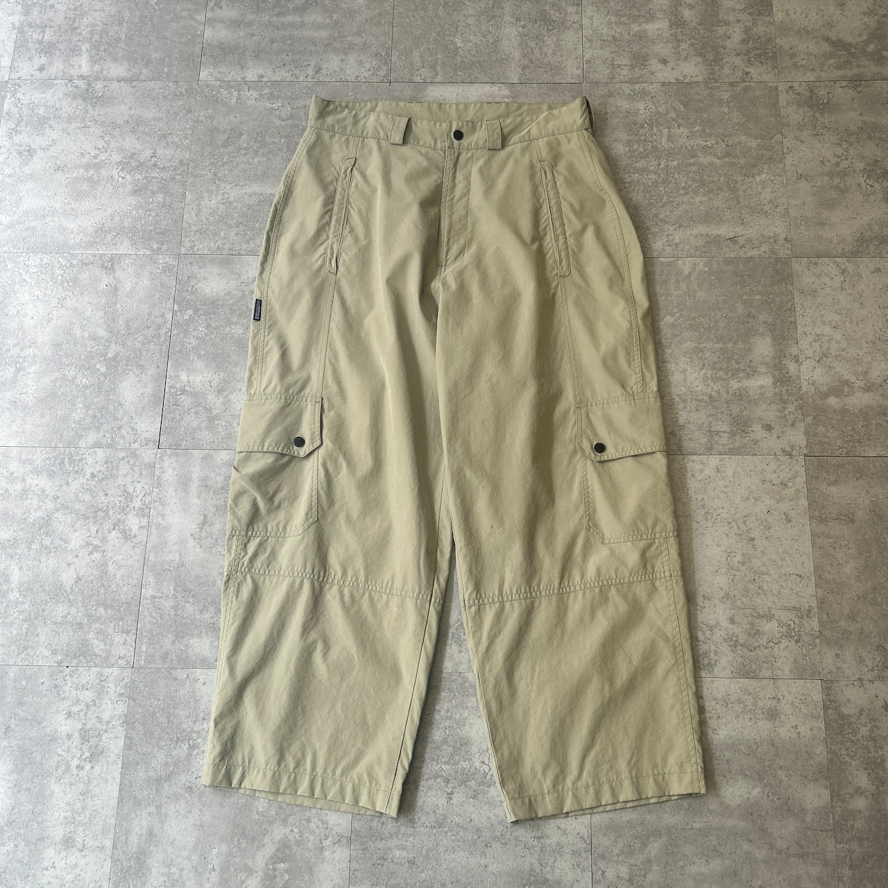 恐らくポリエステル素材のワイドカーゴパンツ