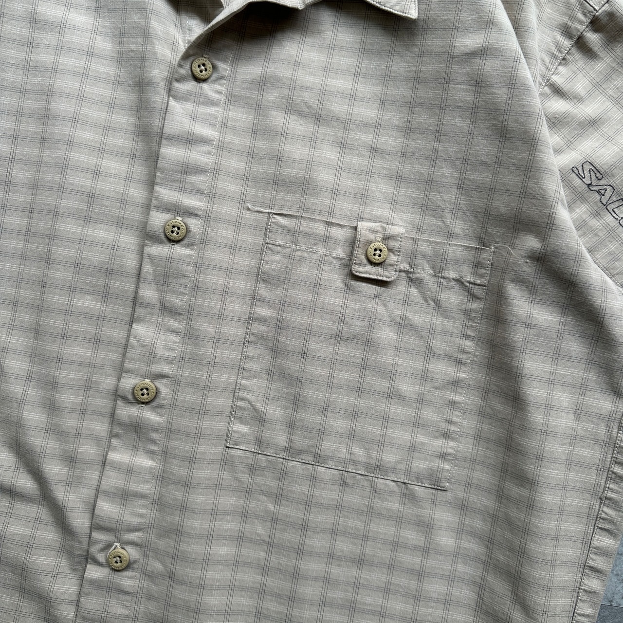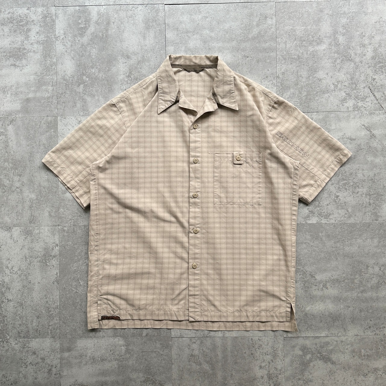 04s Salomon S/S cotton×poly open collar plaid shirt