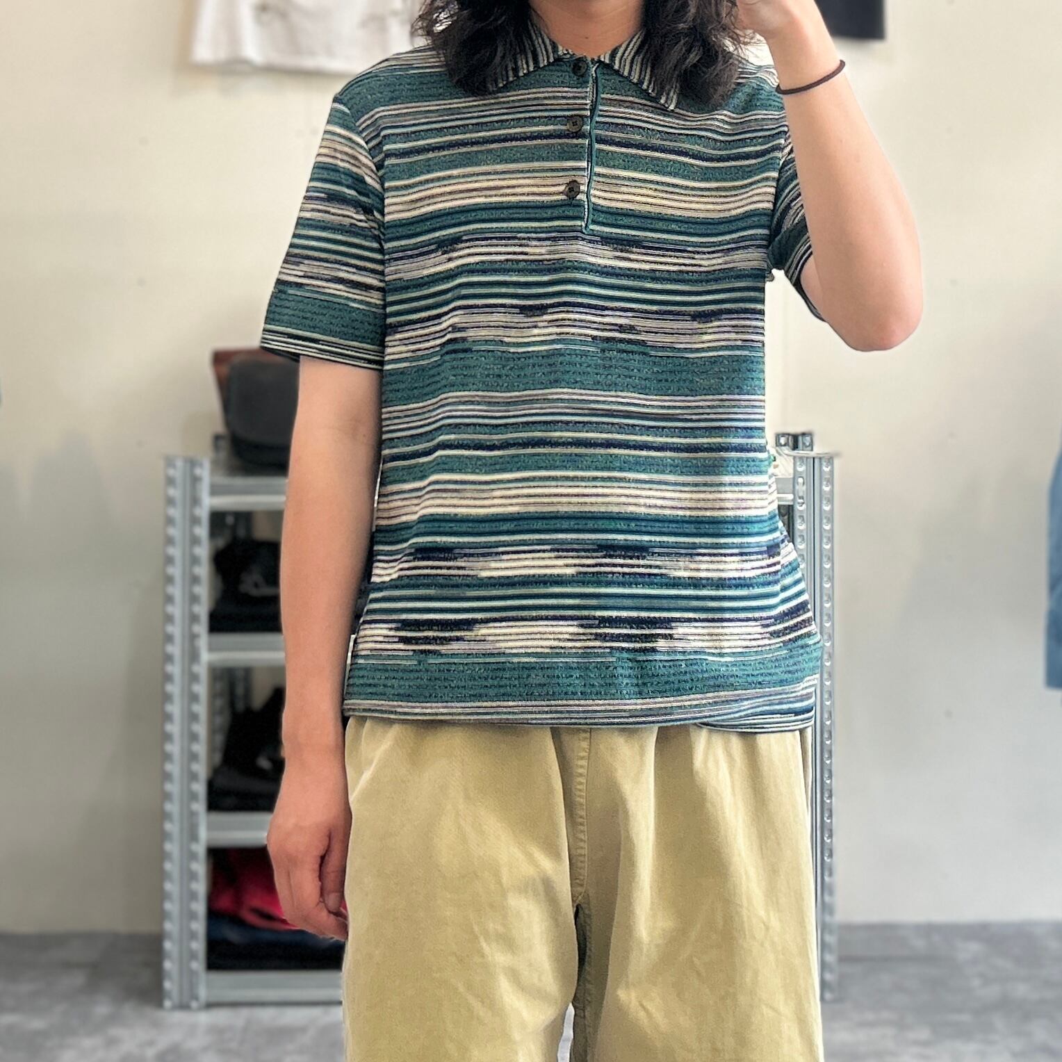 old MISSONI SPORT S/S stripe knit polo shirt made in ITALY