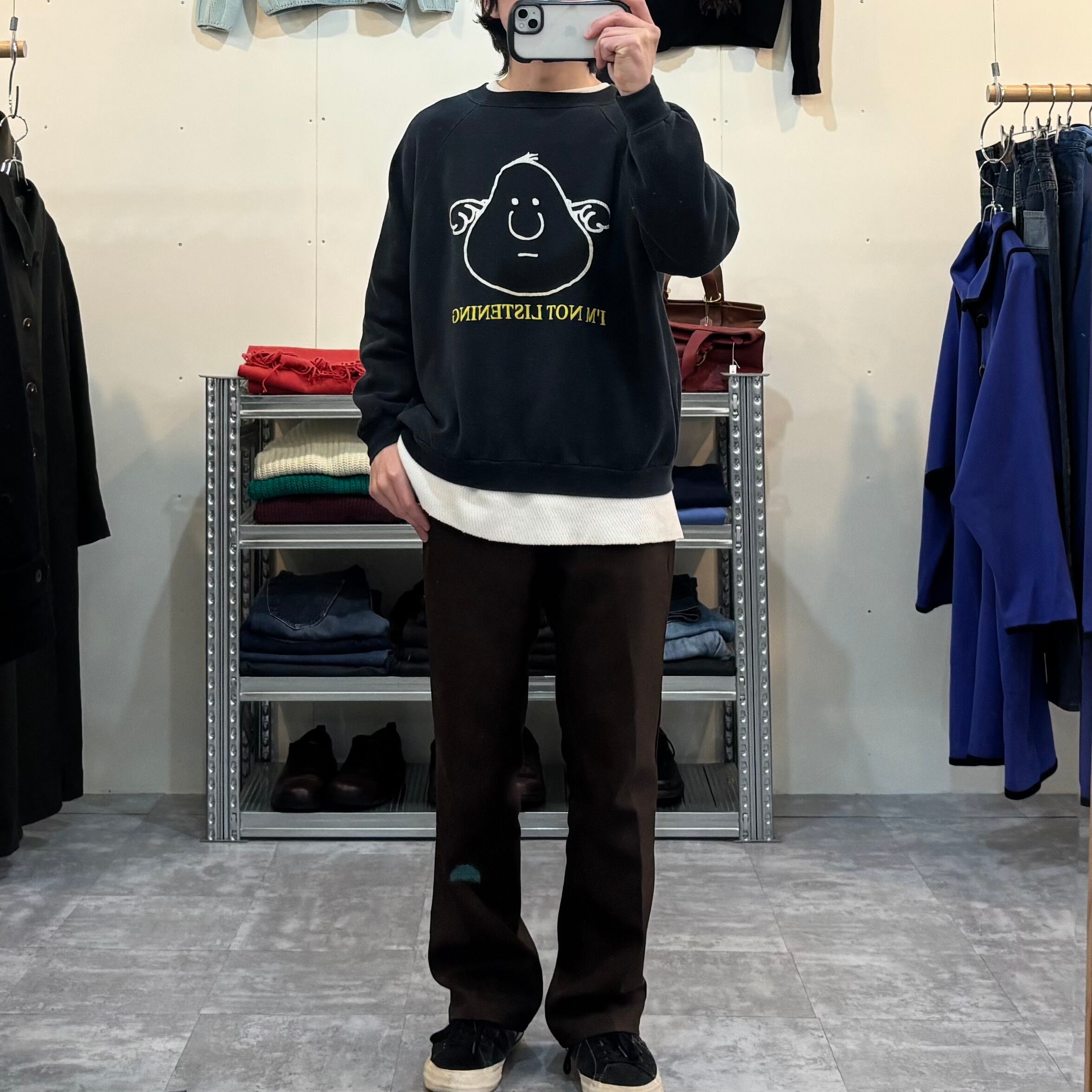 ゆるいタッチのグラフィックとメッセージが古着らしいテンション