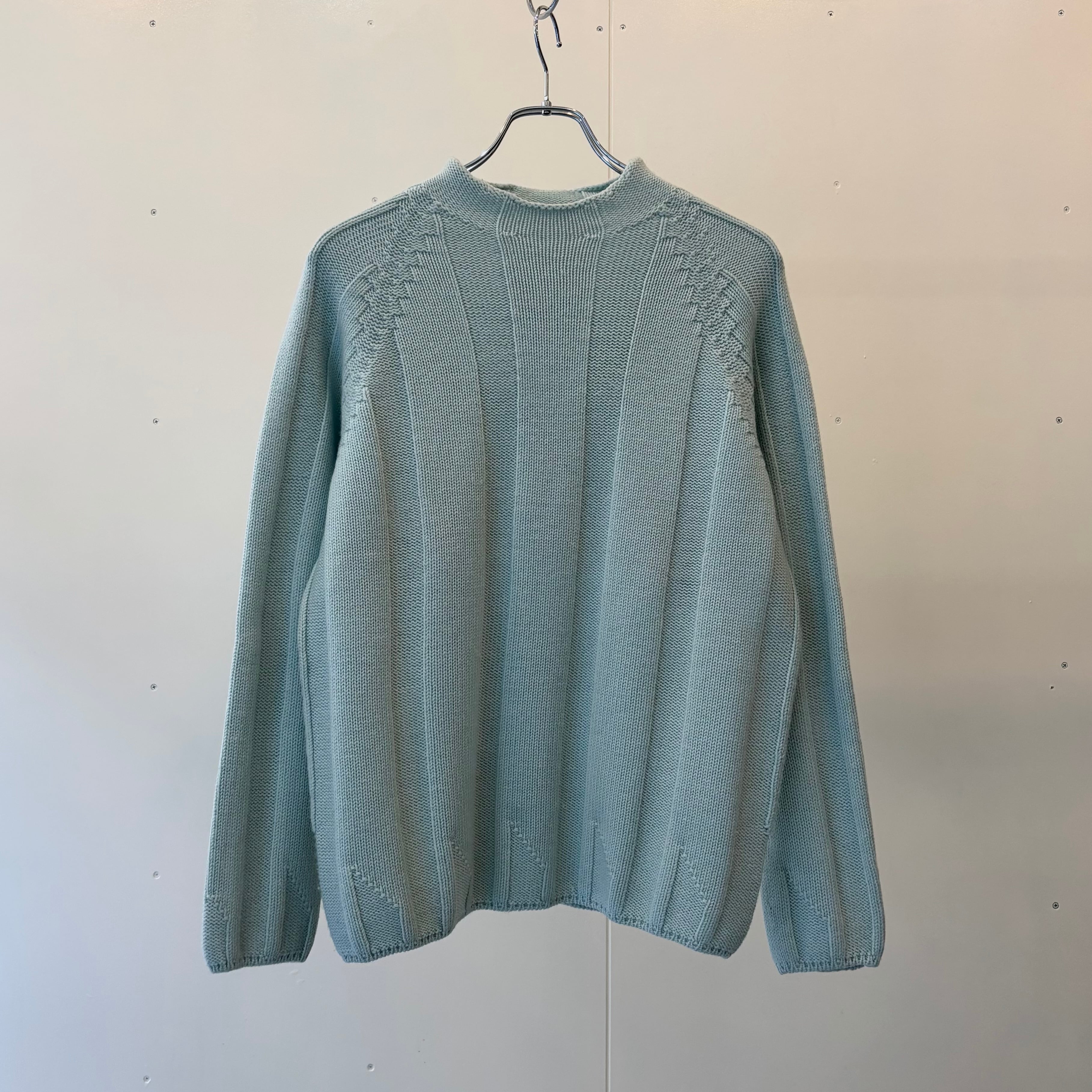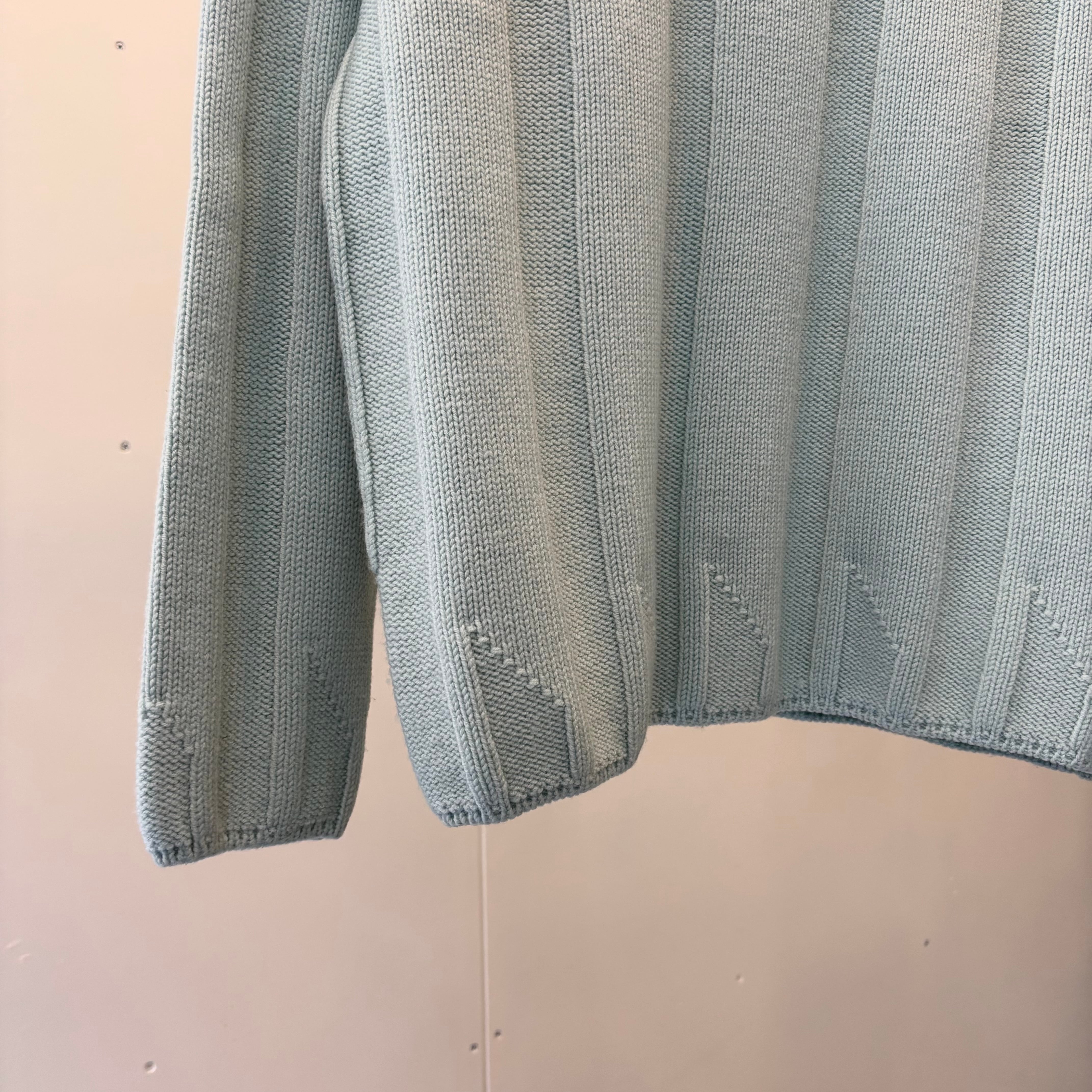 こちらは淡い水色が美しいウールニット