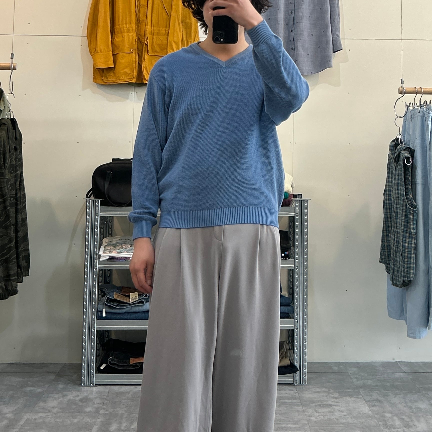 アメリカ製で水色のVネックニット