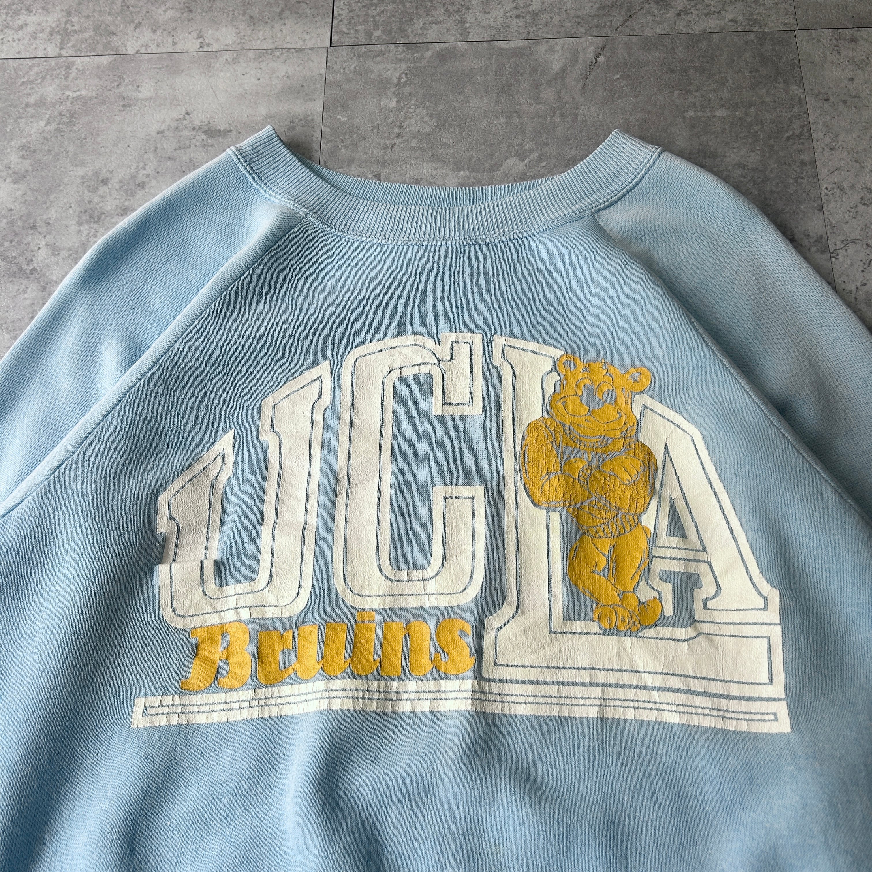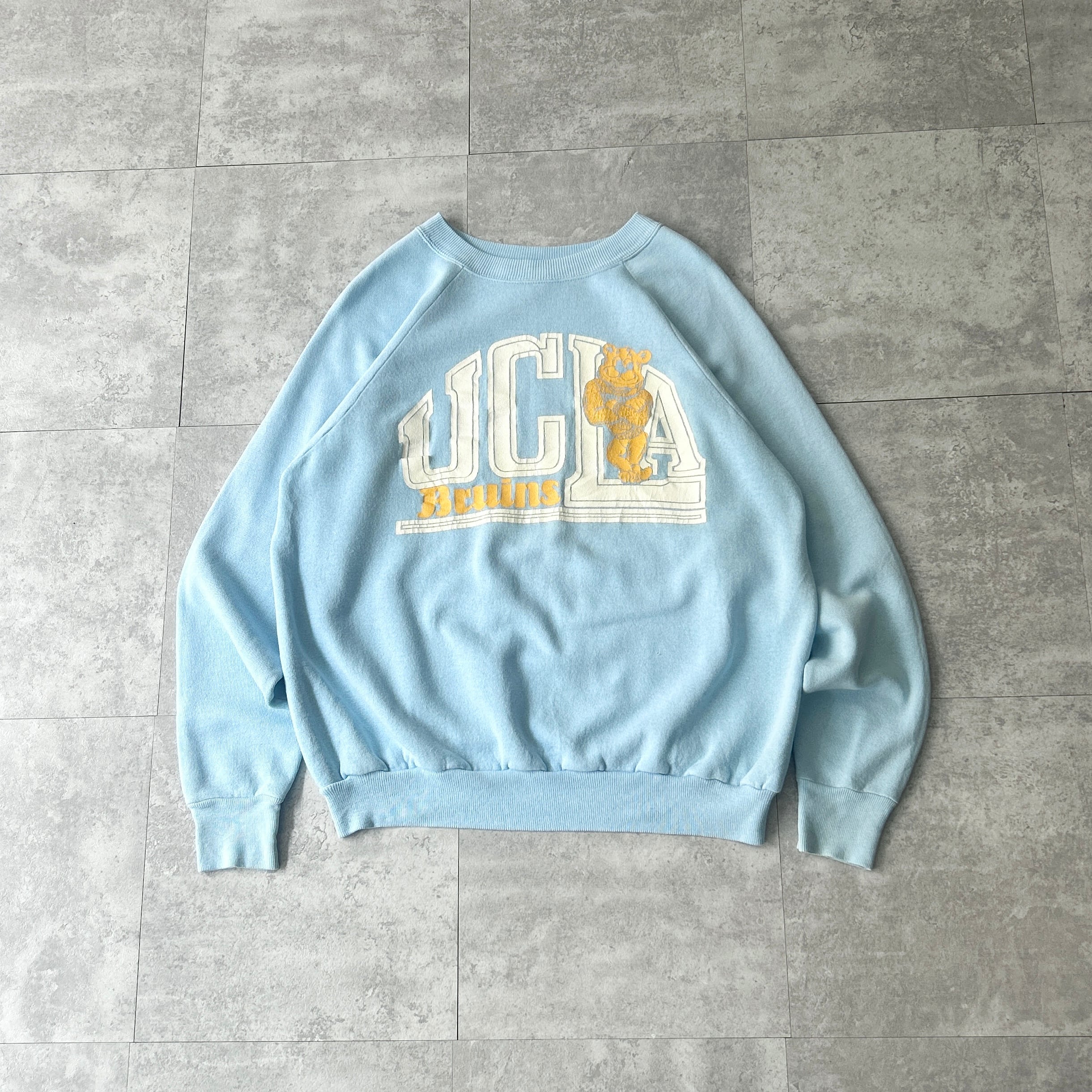 old acrylic×cotton college print sweat shirt made in USA