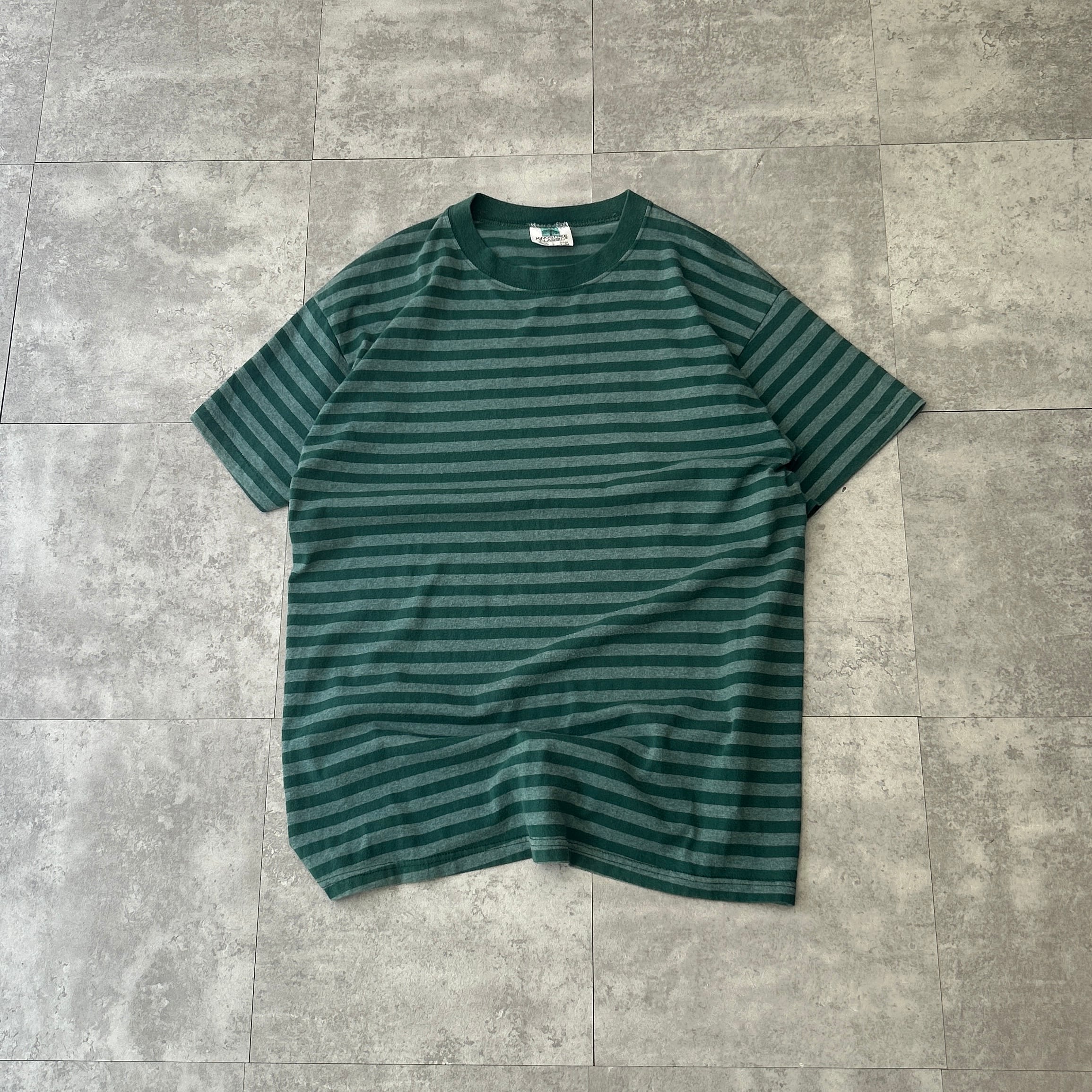 old S/S cotton×poly stripe T-shirt made in USA