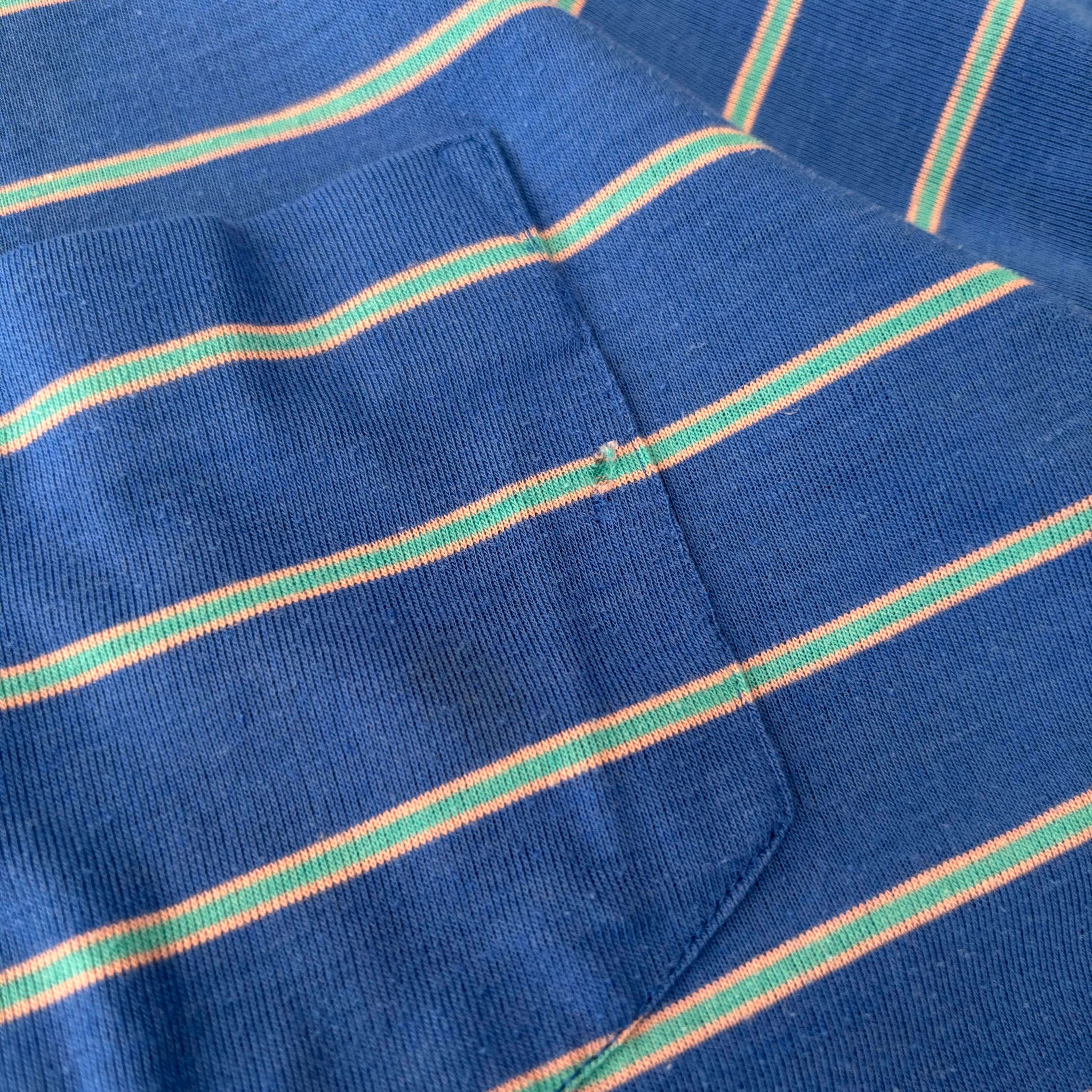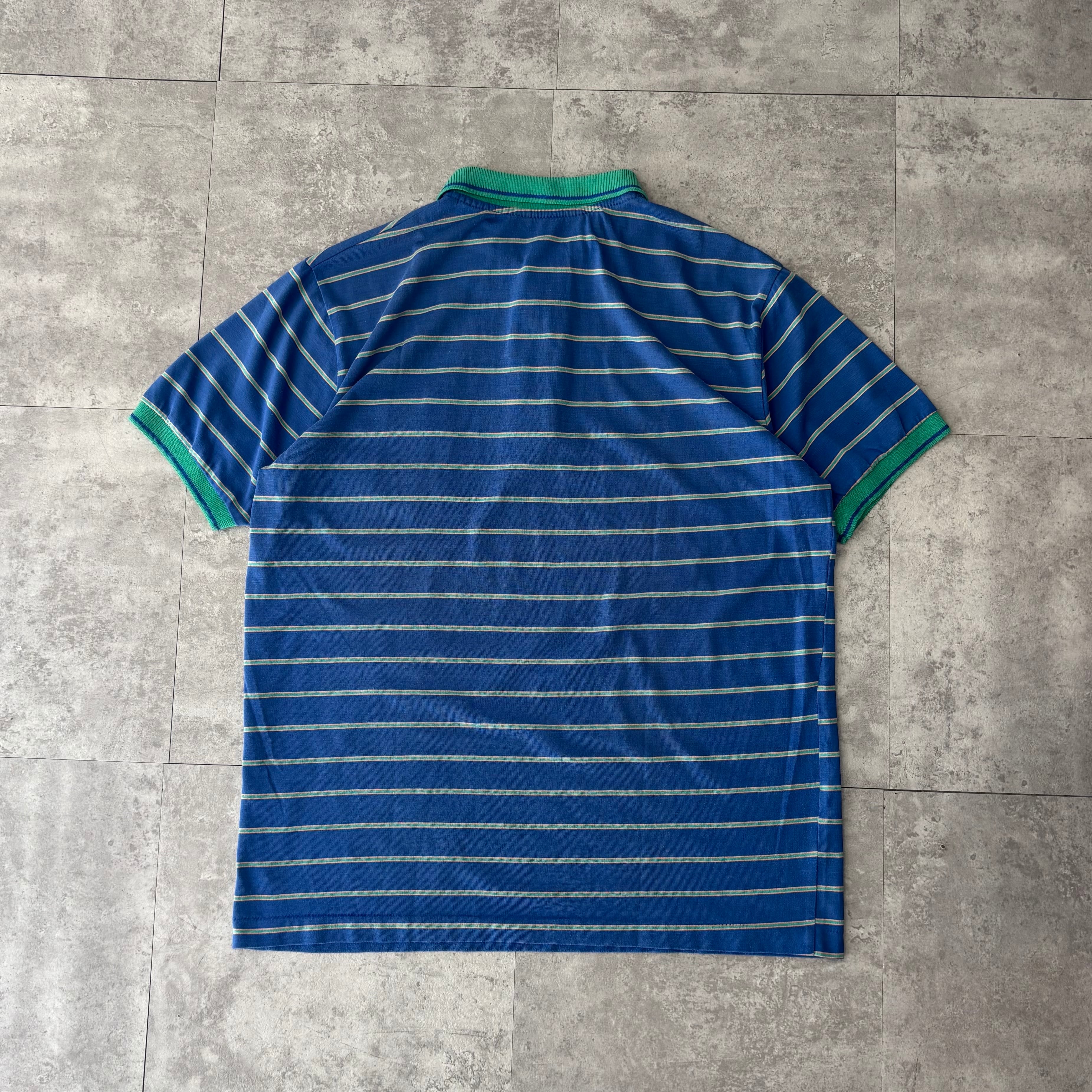 old import brand S/S cotton×poly stripe polo shirt